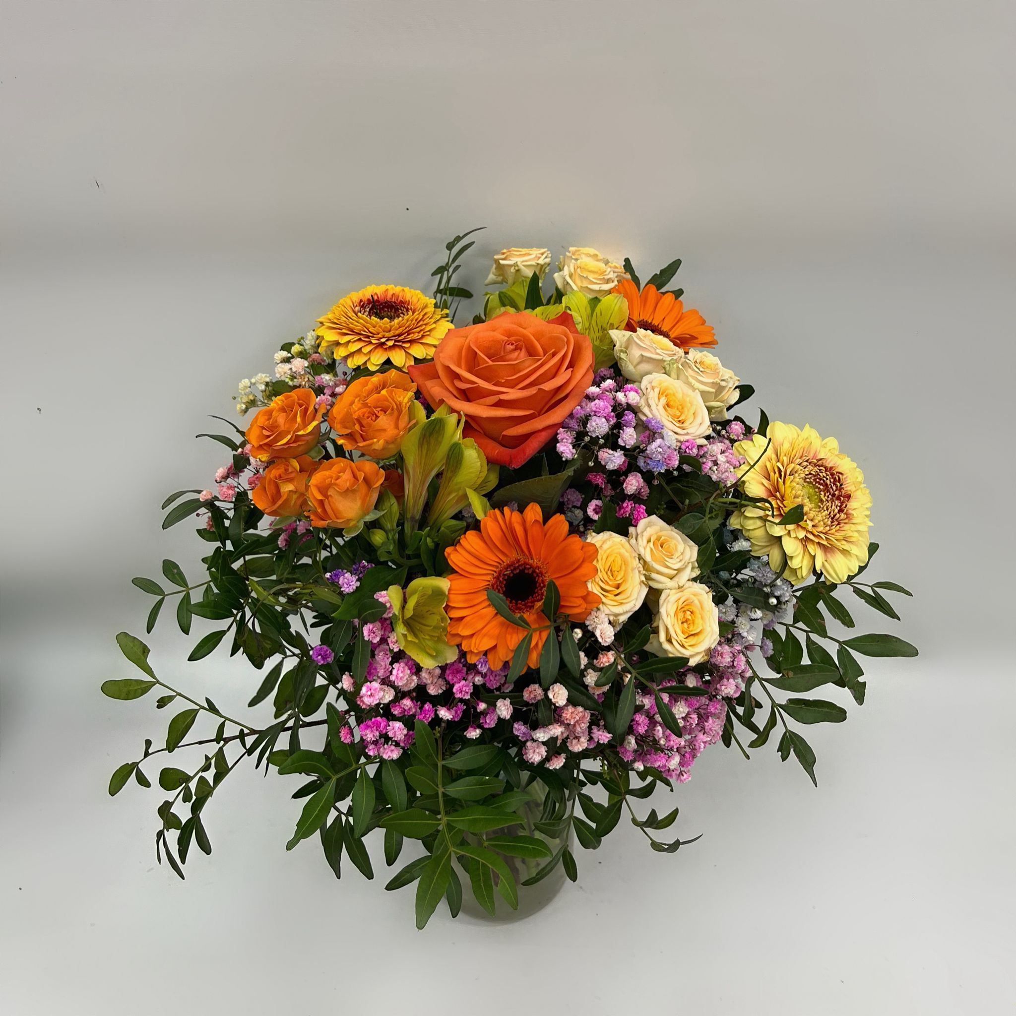 Ideal para celebraciones, cumpleaños o simplemente para iluminar tu hogar, el Ramo Veraniego se presenta en un jarrón elegante que complementa cualquier decoración. Este ramo no solo es un regalo perfecto, sino también una forma de transmitir amor y alegría a quienes más quieres.